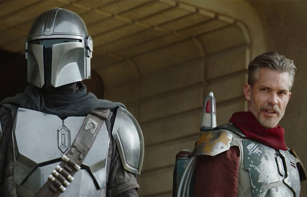 As Mando and The Child ride off into the sunset, among the backdrop of the two suns, a figure is seen watching them from upon high. The character has their back to the camera, but we see a bald head and a cloak, as they turn around and walk out of frame, we get a massive reveal! It is Temuera Morrison! We have to assume that Morrison IS Boba Fett, alive and well and finally part of the new canon. There is an outside chance they may be pulling a fake-out, and it turns out to be a clone trooper who went rogue many years ago. But I think that is unlikely. If this is indeed Fett, there is also every chance that this could be his only appearance and it was just a little Easter egg for the fans. I hope I’m wrong on this, however, as I want to see both Morrison and Olyphant return later on in the series!