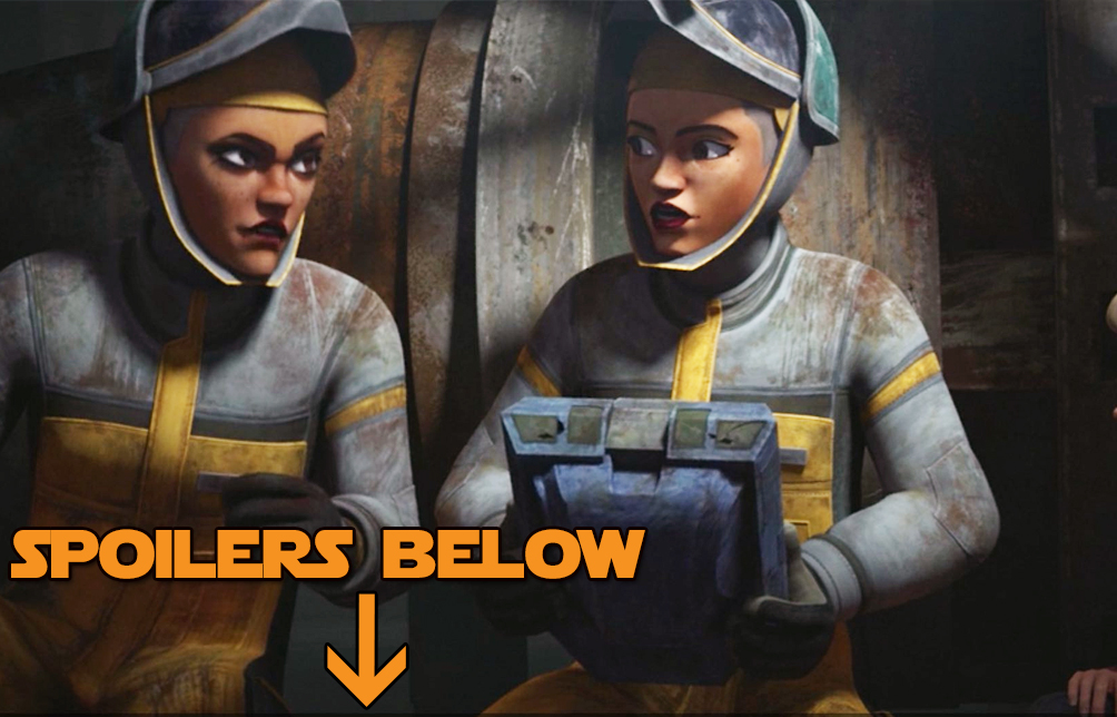 Rafa & Trace – Elizabeth Rodriguez and Brigitte Kali reprise their roles as Rafa and Trace from the final season of The Colne Wars. While I wasn’t a huge fan of their story-arc, from a writing point of view, I enjoyed them as characters, and I think seeing them here was certainly much more enjoyable. The stinger at the end, with them talking to someone about the Batch’s location, I think this is a red herring. I don’t think it is an enemy and it can’t be Fennec because the line was “patch HIM through”, so personally, I think it will be Rex. Why? Because I feel it is an obvious misdirect, to suggest a villain-angle, and the fact they have a fully restored and reactivated R7 with them establishes that Rex link further. Yet, with that said, the outfit tease that we saw does resemble Fulcrum’s from Star Wars Rebels, so it could be anyone, it could even be Ahsoka! But given the link between her and the sisters I doubt she’d hide this fact from them. But still, it might be another familiar face, maybe a senator from Alderaan perhaps? As for the “is there an echo in here” gag, I genuinely laughed out loud. It was so stupid but so funny at the same time!