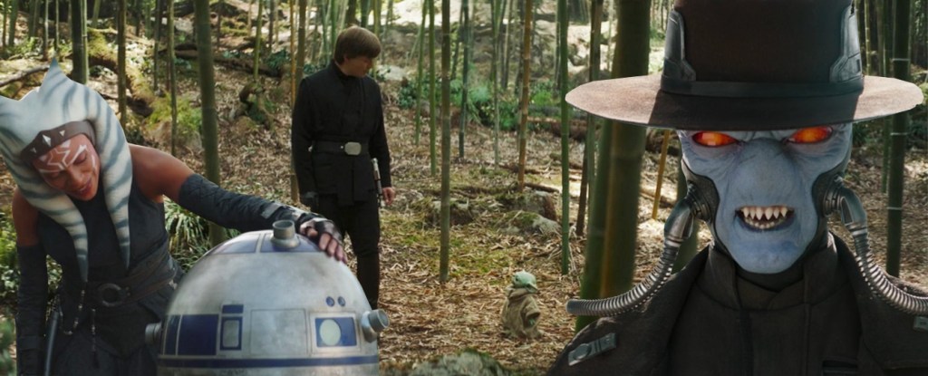 Wow. What a jam-packed episode! There was so much to take in and I think with an episode like this, of course, Dave Filoni gets involved with the writing! I genuinely loved this episode, as it was just one massive mix of Star Wars from all over the galaxy! Again, I think the haters are going to make the lame jokes about the lack of Boba here, but I do not care when the show is this enjoyable and I refer you back to my opening statement. This is a book and books have different focuses at times. Deal with it! As for Cad Bane? He looked great! A little paler in some shots, but still just as menacing! I thought the effects on Luke with Hamill’s voice were less jarring too. I didn’t think it was bad the first time, but I think they did a good job hiding the dialogue in the edit and it works well.