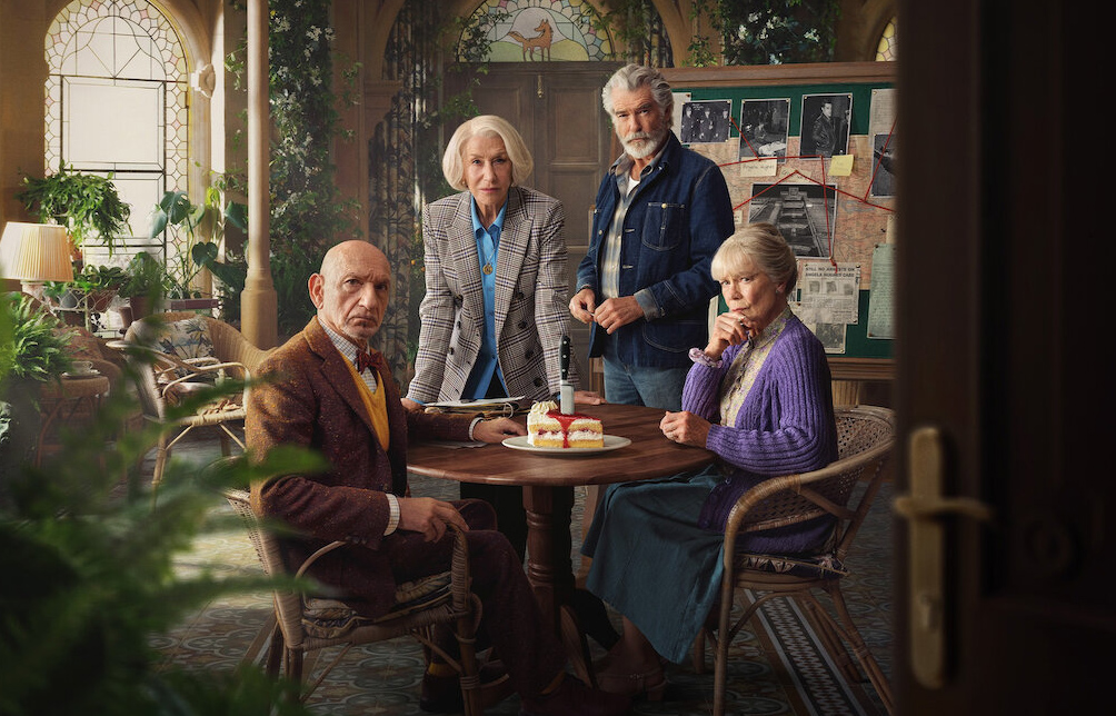 Coopers Chase provides the setting where four elderly people living in a retirement community form a club and meet in the jigsaw room each week to investigate unsolved murder cases. Meet The Thursday Murder Club. Elizabeth (Helen Mirren) supplies the group with gripping cases, provided by another resident now living in the palliative care unit at Coopers Chase. She leads Ron (Pierce Brosnan), Ibrahim (Ben Kingsley) and new recruit, Joyce (Celia Imrie) as they find themselves solving a case in real time when murders begin happening around them.